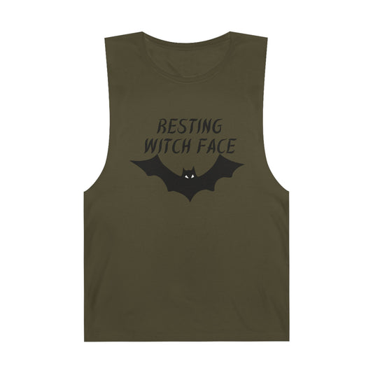 100% Cotton Resting Witch Face Muscle Tank - Spooky Top, Halloween Gift, Casual Wear, Bat Design, Comfortable Tank