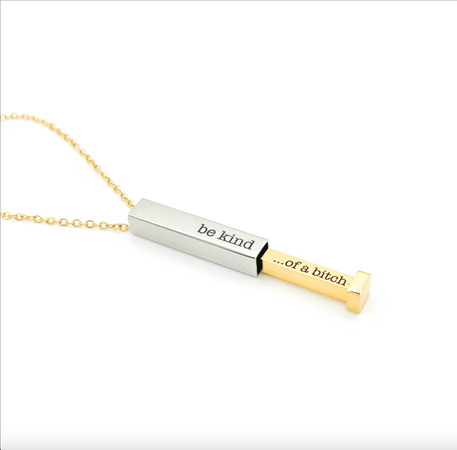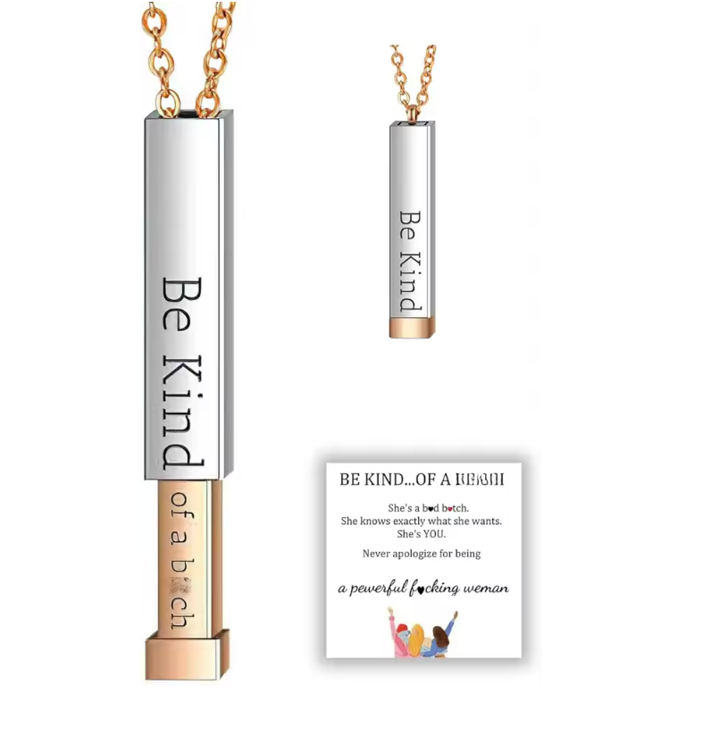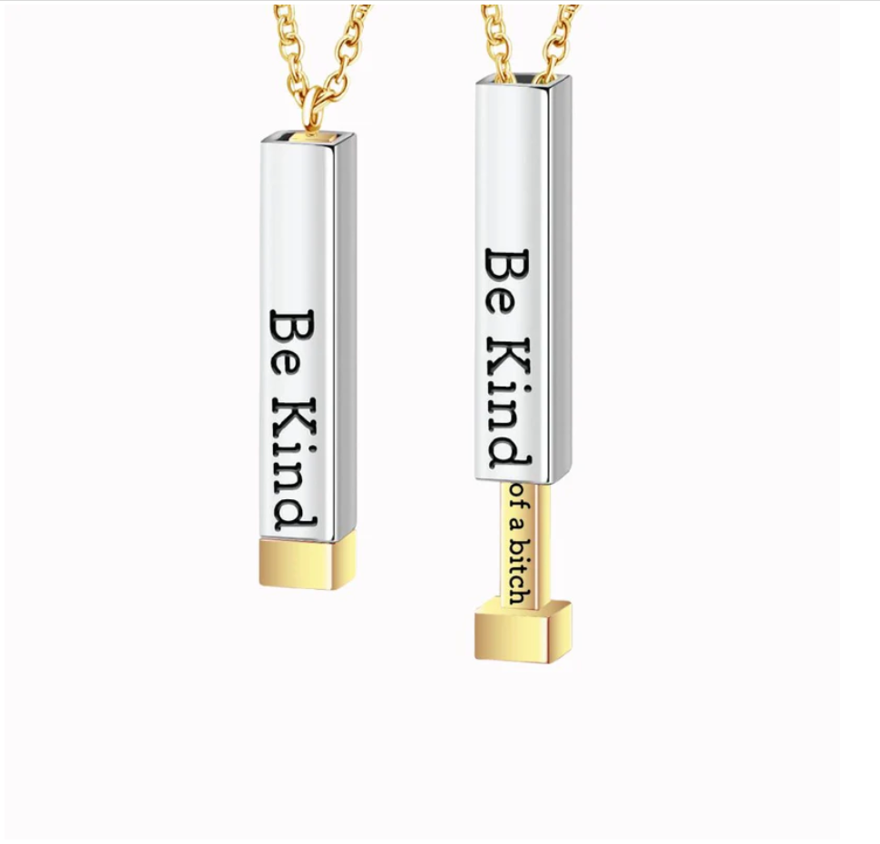 Dual-Tone Hidden Message Pendant Necklace – "Be Kind...of a Bitch" Necklace