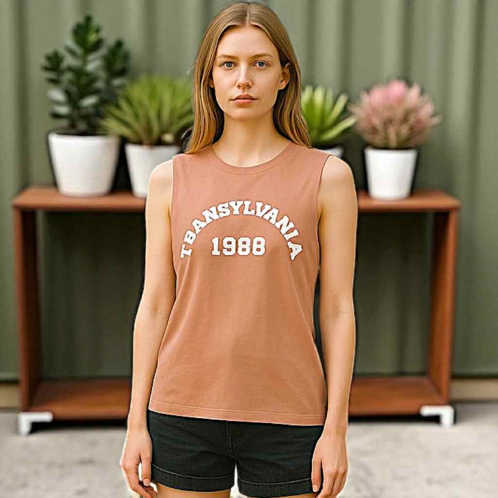 100% Cotton Vintage-Inspired Muscle Tank Top, 1988 Transylvania Retro Tee, Summer Festival Wear, Relaxed Fit Casual Shirt